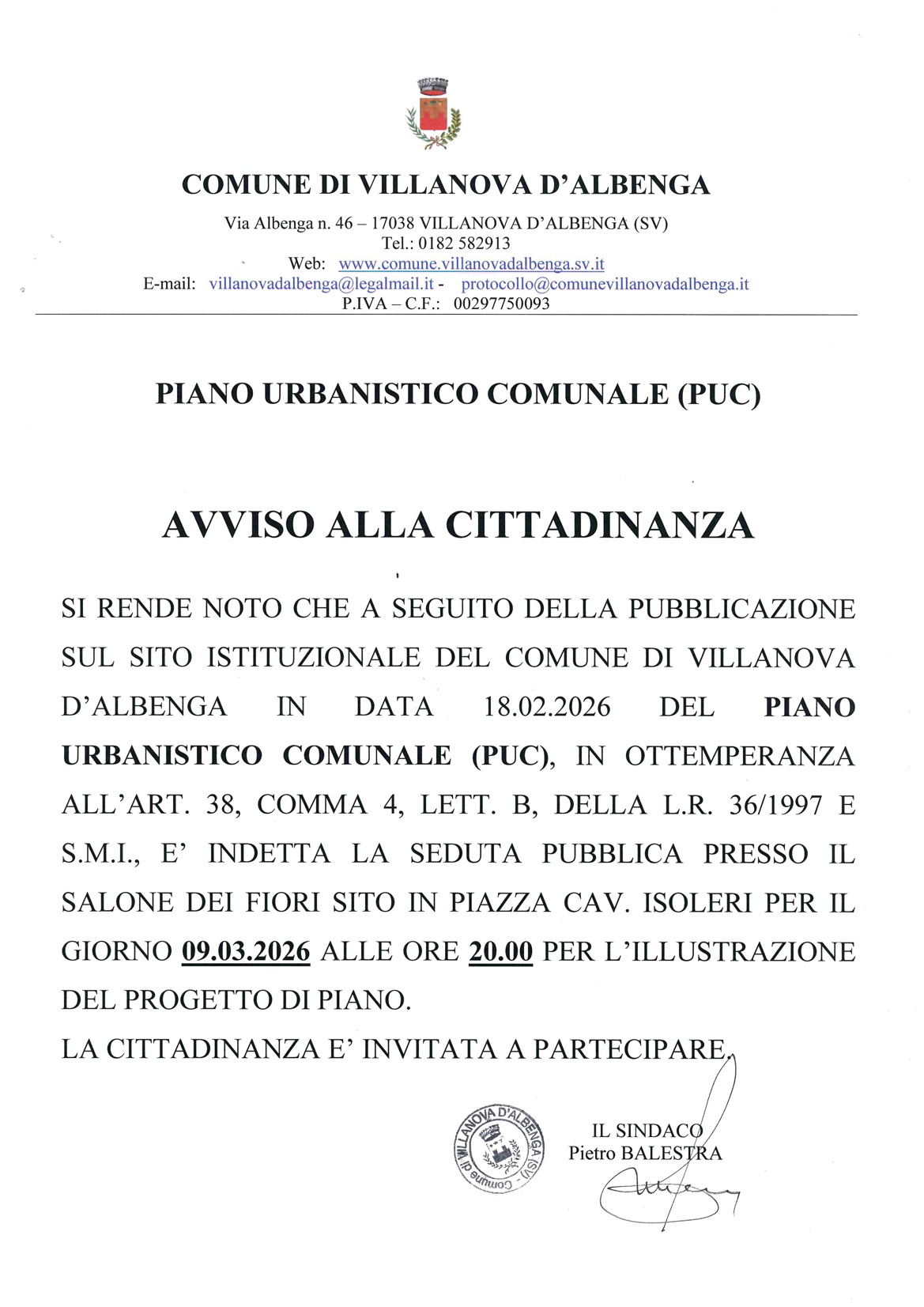 Piano urbanistico comunale (PUC) - Seduta pubblica per illustrazione del progetto di piano